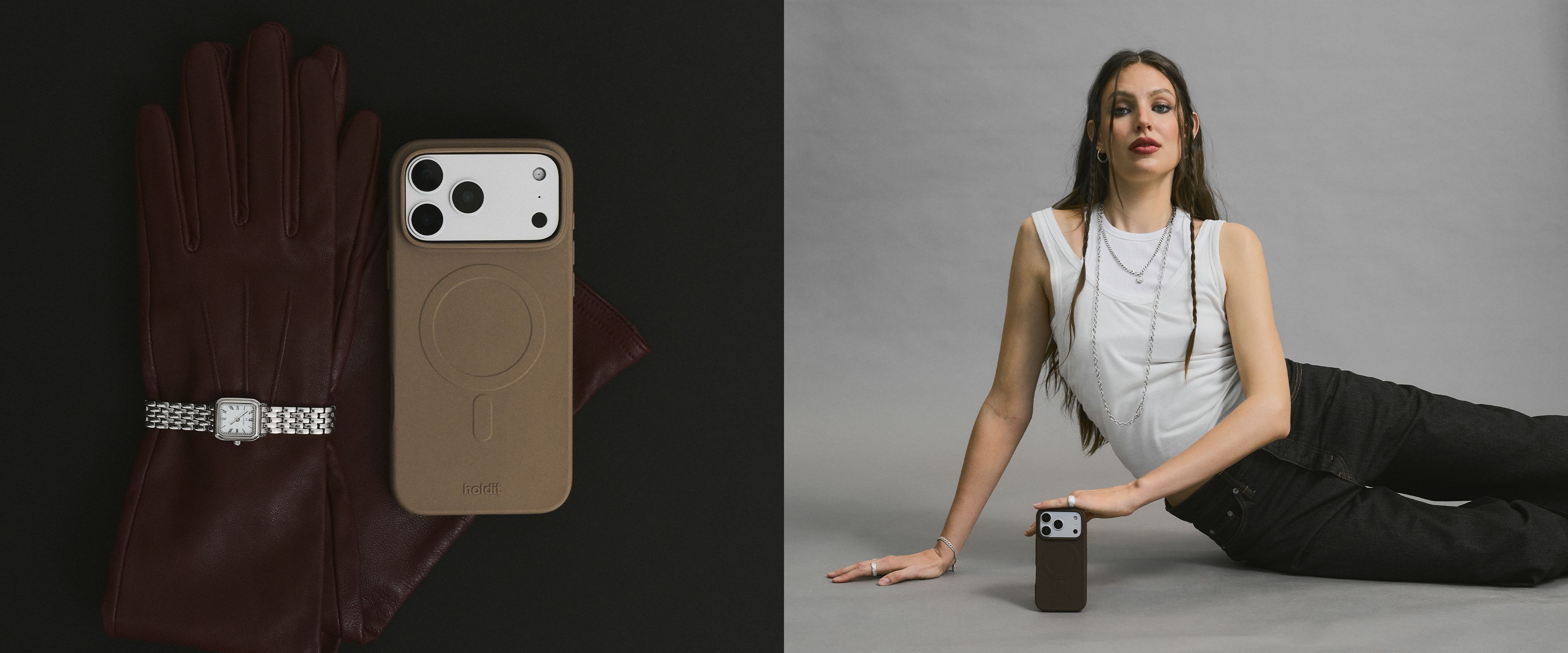 Also, wer sind wir, fragst du dich? Holdit ist nicht nur eine Marke; es ist eine dynamische Gemeinschaft außergewöhnlicher Individuen, die sich täglich darum bemühen, für mobile Mode verantwortlich zu bleiben. Wir stellen hochwertige Handyhüllen und Accessoires her (100 % vegan, natürlich), die nicht nur deine Technik schützen, sondern dir auch einen frischen Stil verleihen. Denn, seien wir ehrlich, dein Telefon ist mehr als nur ein Gadget - es ist eine Modeaussage. Unsere Mission ist es, sicherzustellen, dass du immer in den neuesten Trends gekleidet bist und Technologie und Stil nahtlos miteinander verbindet.