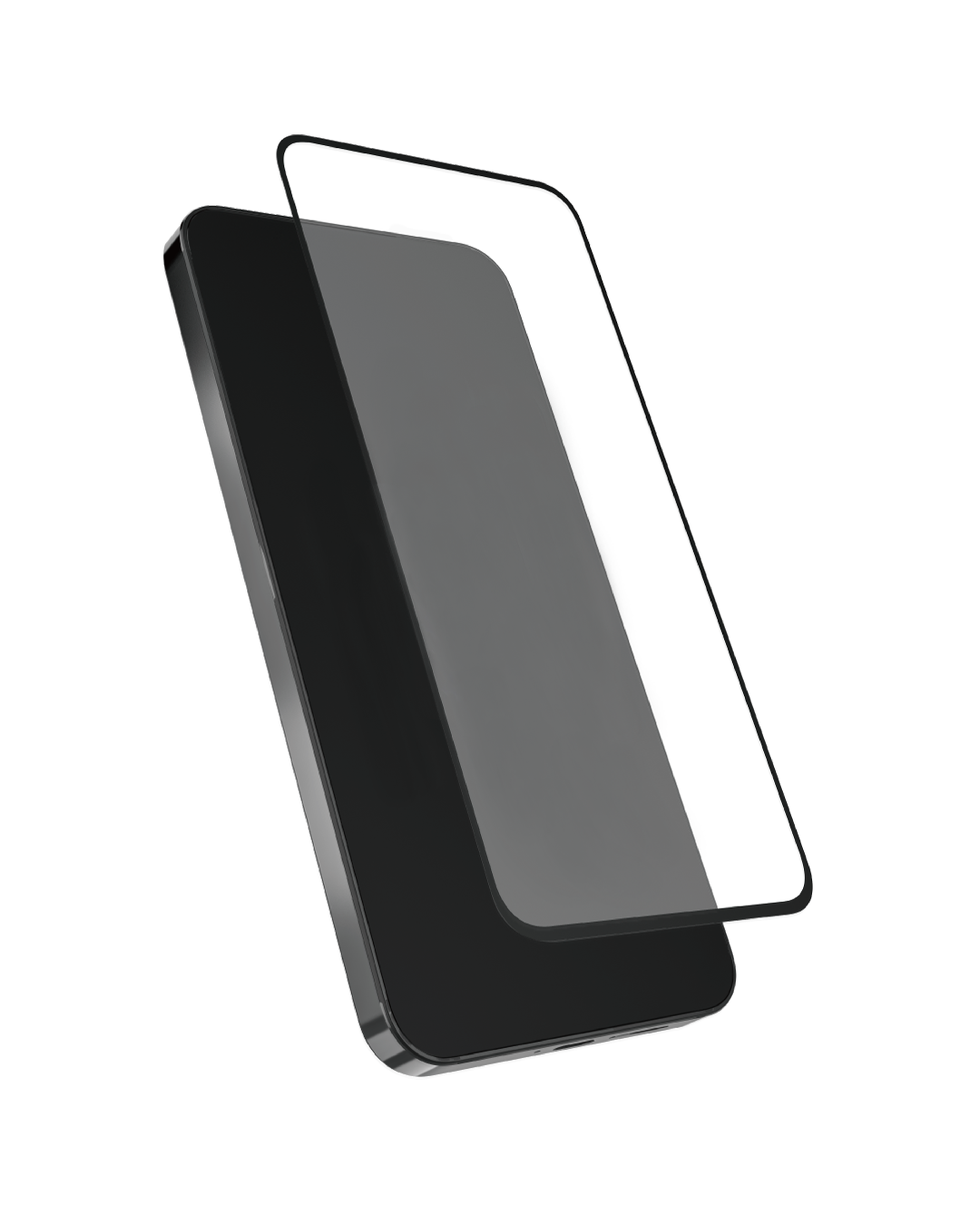 Beskrivning: Skärmskydd som täcker hela framsidan av mobilen, inklusive böjda kanter, helt ut till kanten.